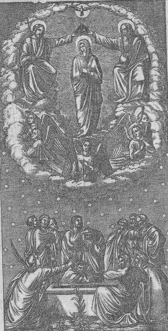 Kaum waren die Verfolgungen und Verwirrungen, welche die Feinde Gottes in der heiligen Kirche in den ersten Jahrhunderten anrichteten, vorüber, als die Christen schon anfingen, den seligen Hingang der heiligen Jungfrau und Mutter Gottes Maria zu feiern. Anfangs wurde das Fest am 18. Januar gefeiert, bis im Jahr 582, auf Bitten des Kaisers Mauritius, der 15. August in der ganzen Kirche des Morgen- und Abendlandes hierzu bestimmt wurde. Seit dieser Zeit wird dieses Fest unter dem Namen „der Himmelfahrt“ oder der „Aufnahme“ der seligsten Jungfrau auf die feierlichste Weise begangen, weil keines von den Marienfesten die Herrlichkeit, die Größe und den Triumph der Mutter des Herrn so schön uns vor Augen stellt. Die heilige Kirche begeht nämlich an diesem Tag die glorreiche Aufnahme Mariens in den Himmel mit Leib und Seele und ihren triumphierenden Einzug in das Reich ihres göttlichen Sohnes. Nach dem Tod des Heilands und seiner Himmelfahrt blieb Maria in der Stadt Jerusalem bis zur Zeit, als die furchtbare Verfolgung, die im Jahr 44 n. Chr. ausbrach, sie zwang, mit den Aposteln zu flüchten. Der Apostel Johannes, ihr Pflegesohn, führte sie nach Ephesus. Dort brachte sie ihre Tage im beständigen Gebet für das Gedeihen der jungen Kirche und das Heil der Menschen zu. Ihr Herz war immer im Himmel bei ihrem göttlichen Sohne; mit ruhiger Ergebung ertrug sie den Schmerz der Trennung von dem Geliebten ihres Herzens und ihr einziger Wunsch war, mit ihm auf ewig vereint zu sein. Von allem, was ihrem Herzen und ihrem Blut verwandt war, blieb der heiligen Jungfrau niemand mehr als der heilige Johannes, der sie auf das Zärtlichste liebte und jeden ihrer Winke befolgte. Gewiss muss der blühende Zustand der ersten Christengemeinde zu Ephesus und das Lob, welches der Apostel Paulus ihrer Frömmigkeit erteilt, den Bemühungen der seligsten Jungfrau zugeschrieben werden. Da der heilige Johannes nicht immer in Ephesus blieb, sondern um der Ausbreitung und Befestigung des Glaubens willen mehrere Reisen machte, begleitete ihn die heiligste Jungfrau, und die tiefe Erkenntnis in den Geheimnissen Gottes, welche in seinen heiligen Schriften herrscht und der Geist der wundersamen Liebe, der daraus hervorleuchtet, weisen auf den Beistand hin, den die Mutter der himmlischen Weisheit und der schönen Liebe ihm geleistet hat. Mittlerweile hatten die heiligen Apostel den guten Samen des heiligen Wortes auf allen Punkten des römischen Reiches ausgesät; schon blühten überall fromme Gemeinden und Maria meinte nun, ihr Tagewerk auf Erden sei vollendet, die Kirche werde sich nun aus eigener Kraft erhalten können und die Sehnsucht, das Angesicht ihres göttlichen Sohnes zu schauen, verzehrte ihr Herz. Jesus kannte den Wunsch seiner geliebten Mutter und wollte ihn nun auch erfüllen. Der Erzengel Gabriel brachte ihr die freudige Nachricht, dass ihr Gebet Erhörung gefunden habe. Doch ehe sie von dieser Erde schied, wollte sie noch einmal das Land besuchen, wo sie seit den Tagen ihrer Geburt gelebt, wo die Füße ihres göttlichen Sohnes gewandelt hatten. Mit dem heiligen Johannes fuhr sie zu Schiff in das heilige Land und begab sich nach Jerusalem, wo sie sich in das Haus auf dem Berge Sion zurückzog, in welchem der heilige Geist am Pfingsttag auf sie und die Apostel niederstieg. Freudig eilte der heilige Apostel Jakob, der erste Bischof von Jerusalem, herbei, um die göttliche Mutter zu begrüßen und alle Gläubigen drängten sich herzu, um sie zu sehen und ihr ihre Huldigung darzubringen. Endlich war der Tag und die Stunde gekommen, wo der Himmel sich öffnen sollte, um seine Königin aufzunehmen. Wohl hätte Maria, die von der Erbsünde frei geblieben war und auch niemals sich einer Sünde schuldig gemacht hatte, von dem Tod befreit sein müssen, der ja nur eine Strafe der Sünde ist. Doch wie ihr göttlicher Sohn Jesus sich freiwillig dem Gesetz des Todes unterworfen hatte, um dadurch den Menschen das ewige Leben zu gewinnen, so wollte auch seine hochheilige Mutter, die ihm in allen Stücken als seine getreueste Nachfolgerin ähnlich geworden war, gleichfalls von diesem Gesetz nicht ausgenommen sein. Da sie aber auch in so vielen Stücken vor allen Menschen ausgezeichnet und begnadigt war, so war auch ihr Tod nicht, wie bei anderen Menschen, die Folge einer körperlichen Krankheit, sondern, wie die heiligen Väter lehren, vielmehr eine Folge der Liebe, welche sie verzehrte. „Entweder“, sagt der heilige Ildephonsus, „musste Maria nicht sterben, oder sie musste vor Heftigkeit der Liebe sterben!“ Das Feuer dieser Liebe war so heftig, sagt der heilige Bernard, dass die Erhaltung ihres Lebens ein beständiges Wunder war. Als daher die Stunde ihres Todes nahte, hielt Jesus die verzehrende Gewalt dieses Feuers nicht mehr zurück, und so verlosch das Leben der reinsten Jungfrau wie ein Licht, verzehrt von der Flamme. Arm und demütig, aber schön, wie sie stets gewesen, saß sie im ärmlichen Bettlein, in ihr einfaches Gewand gehüllt. Die Gläubigen konnten sich nicht satt sehen an ihrem wunderschönen Antlitz. Es war, als dürfe die Alles zerstörende Zeit diesen jungfräulichen Leib nicht berühren, der den Allerhöchsten getragen, und zu einer glorreichen Unsterblichkeit bestimmt war. Wie eine alte, ehrwürdige Überlieferung berichtet, waren alle Apostel, Thomas ausgenommen, in der letzten Stunde der gebenedeiten Gottesmutter auf wunderbare Weise erschienen. Bereits war es Nacht geworden. Die Lampen waren angezündet; im stillen Schmerz versunken umstanden die Apostel und Jünger des Herrn das Ruhebett ihrer geliebtesten Mutter. Da öffnete Maria den Mund und himmlischer Trost fiel in das Herz der trauernden Apostel, als sie ihnen sagte, dass sie ihrer im Himmel nicht vergessen werde. Jetzt ertönten wunderbare Gesänge und ein glänzendes Licht erfüllte das Gemach. Die Apostel warfen sich auf die Knie und Maria breitete segnend ihre Hände über sie aus. Ihr schönes Auge erhob sie zu den Ste