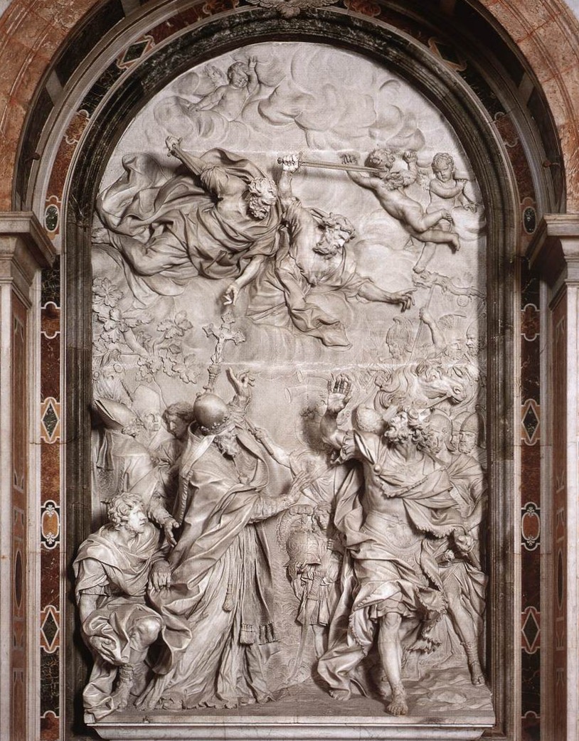 | 19:24, 8. Nov. 2015 | Leo der Grosse3.jpg (Datei) | 306 KB | Alessandro Algardi: Grabdenkmal für Leo I.: Leo (links) weist auf den himmlischen Beistand von Petrus, Attila (rechts) weicht zurück; Marmor, 1646-53, im Petersdom im Vatikan Quelle: Joachim Schäfer - Ökumenisches Heiligenlexikon - laut Kennzei… | 1 | |